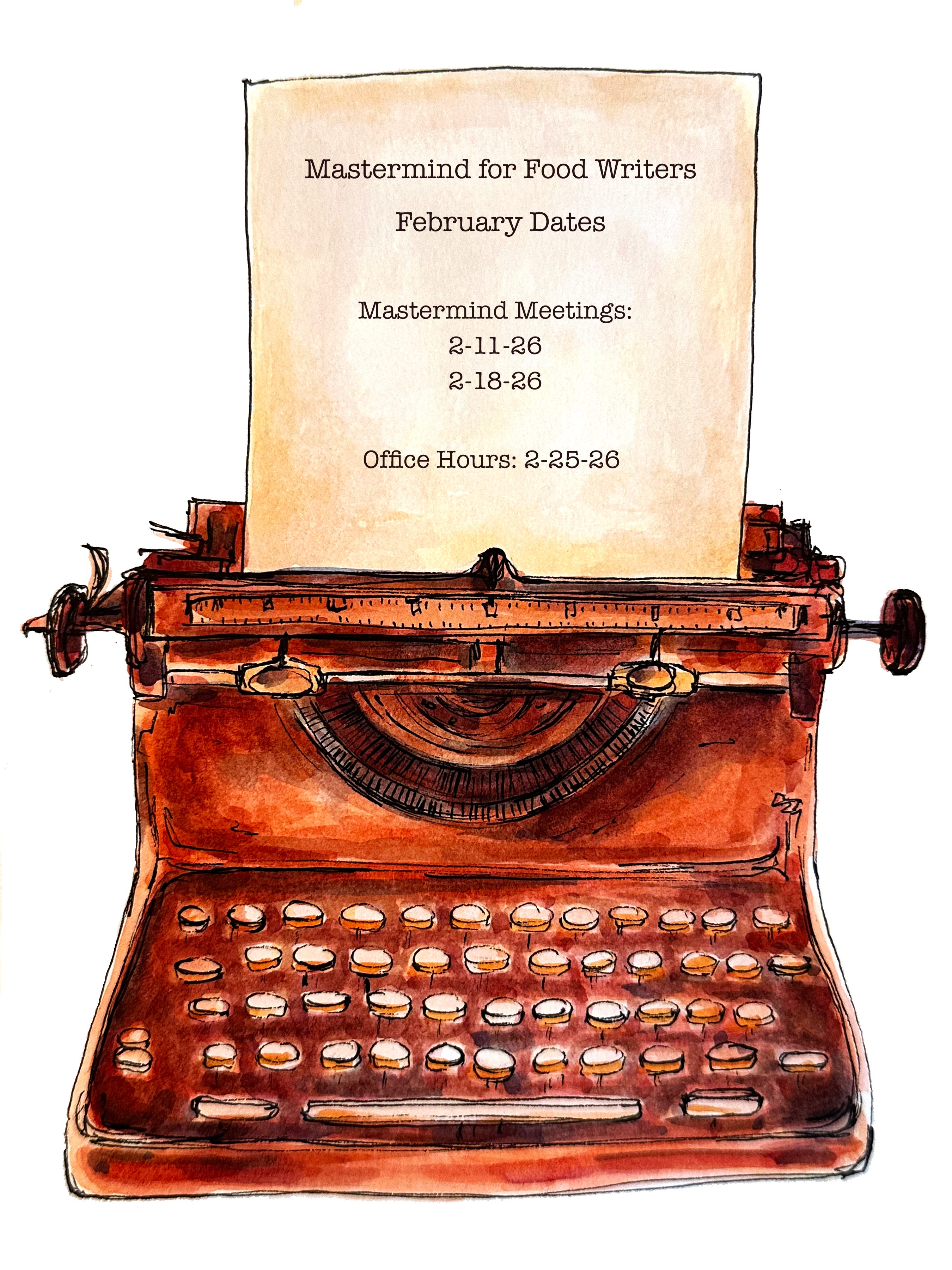 Mastermind for Food Writers dates and other important info