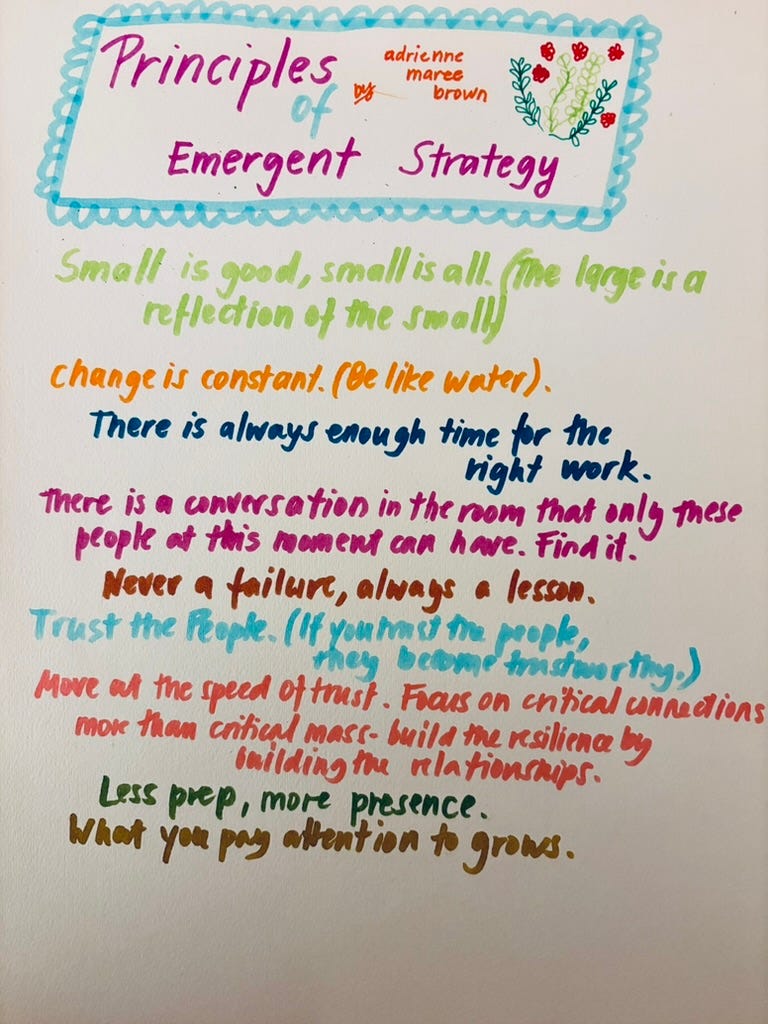 And finally, since we mentioned the Principles of Emergent Strategy by adrienne maree brown, here is a list of them, if you are curious: